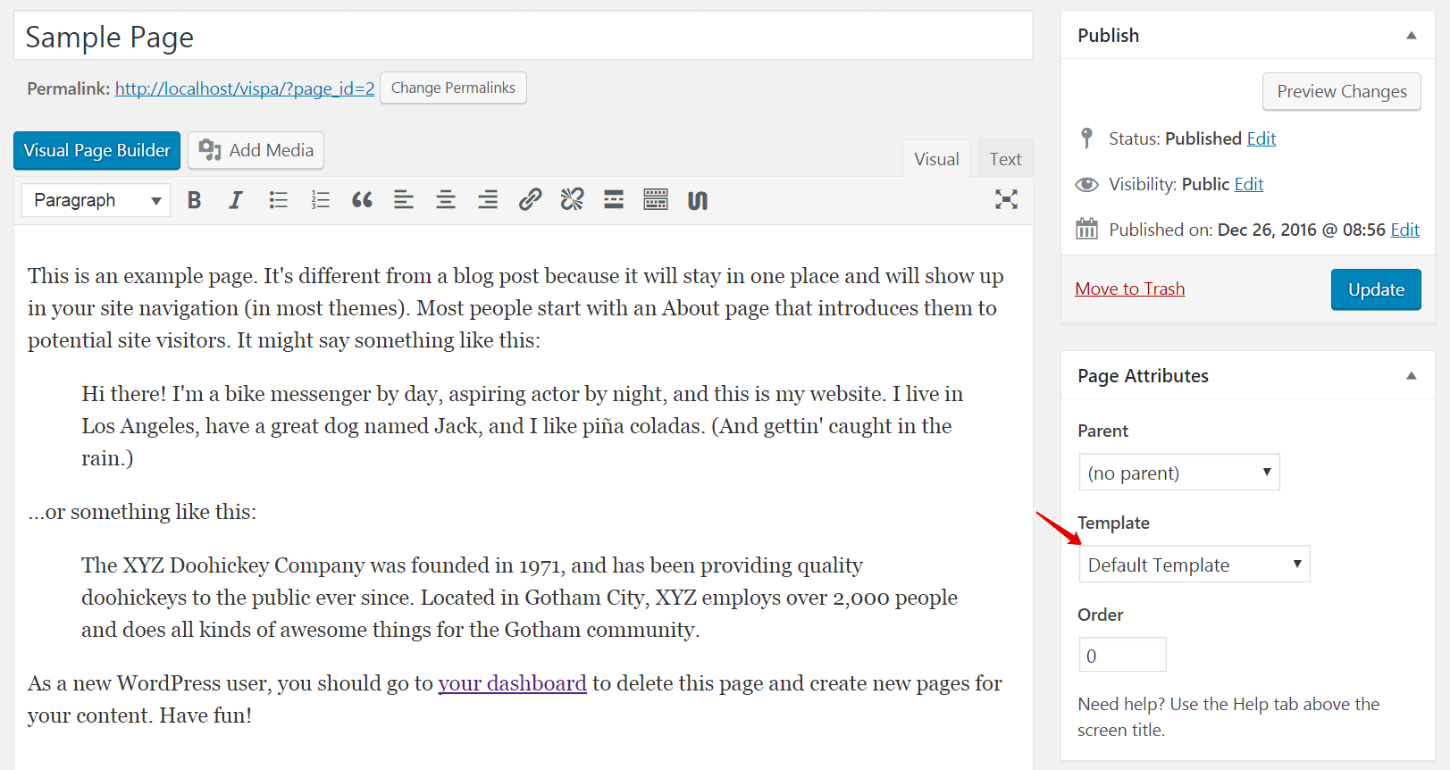 The theme comes with the following Page templates:
