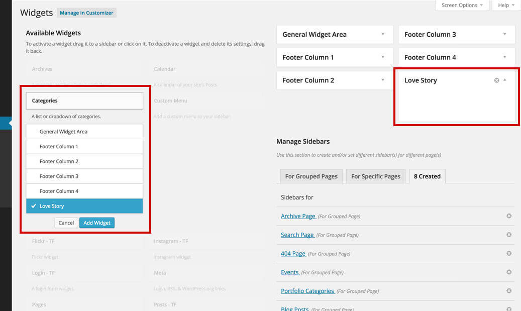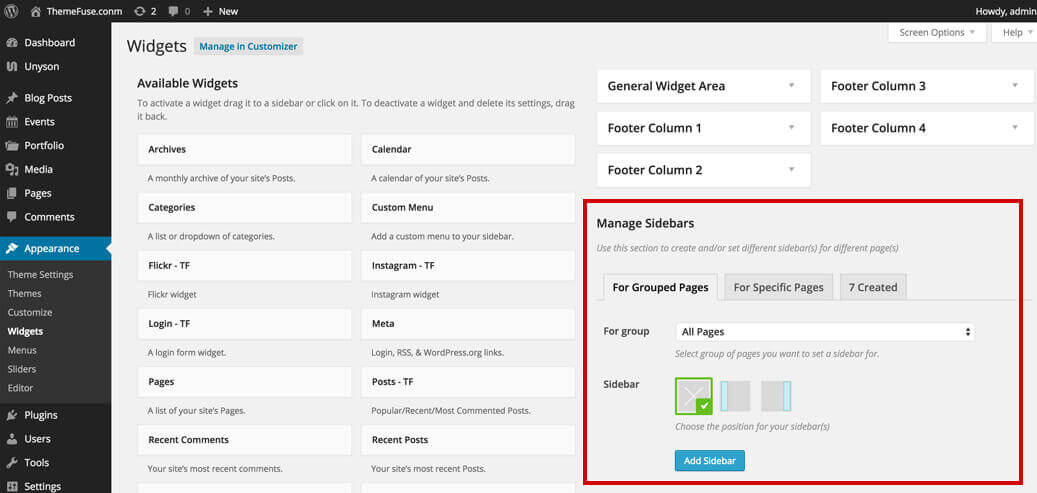 1. Add widgets in your newly created sidebar.