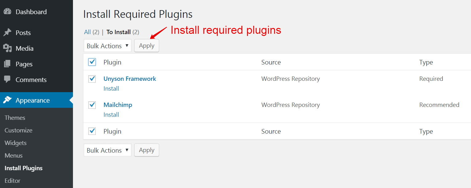 If something goes wrong, go to Unyson page and install them