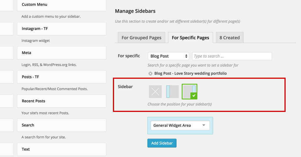 1. Select the position of your sidebar.