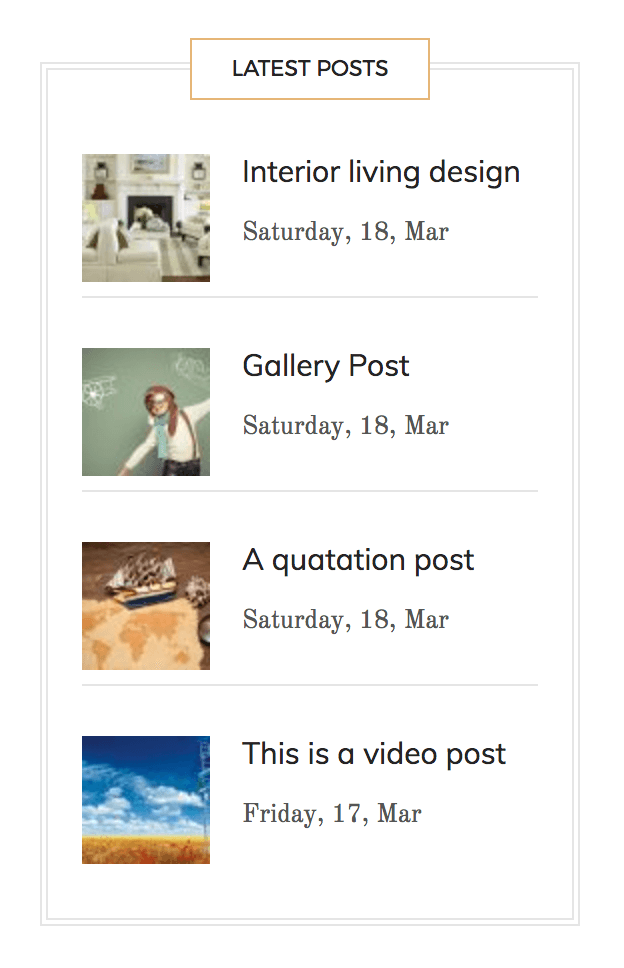 It is a specific content that you can add to the sidebars on your website. In our theme you can add widgets to the right, left sidebars and to the footer. They can be easily added, rearranged and removed by dragging it to the chosen place in AppearanceWidgets.