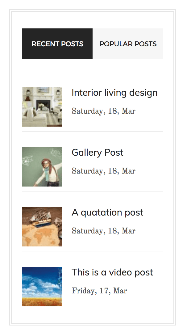 Widget lets you display your recent and popular posts with thumbnails and as tabs in sidebar.
