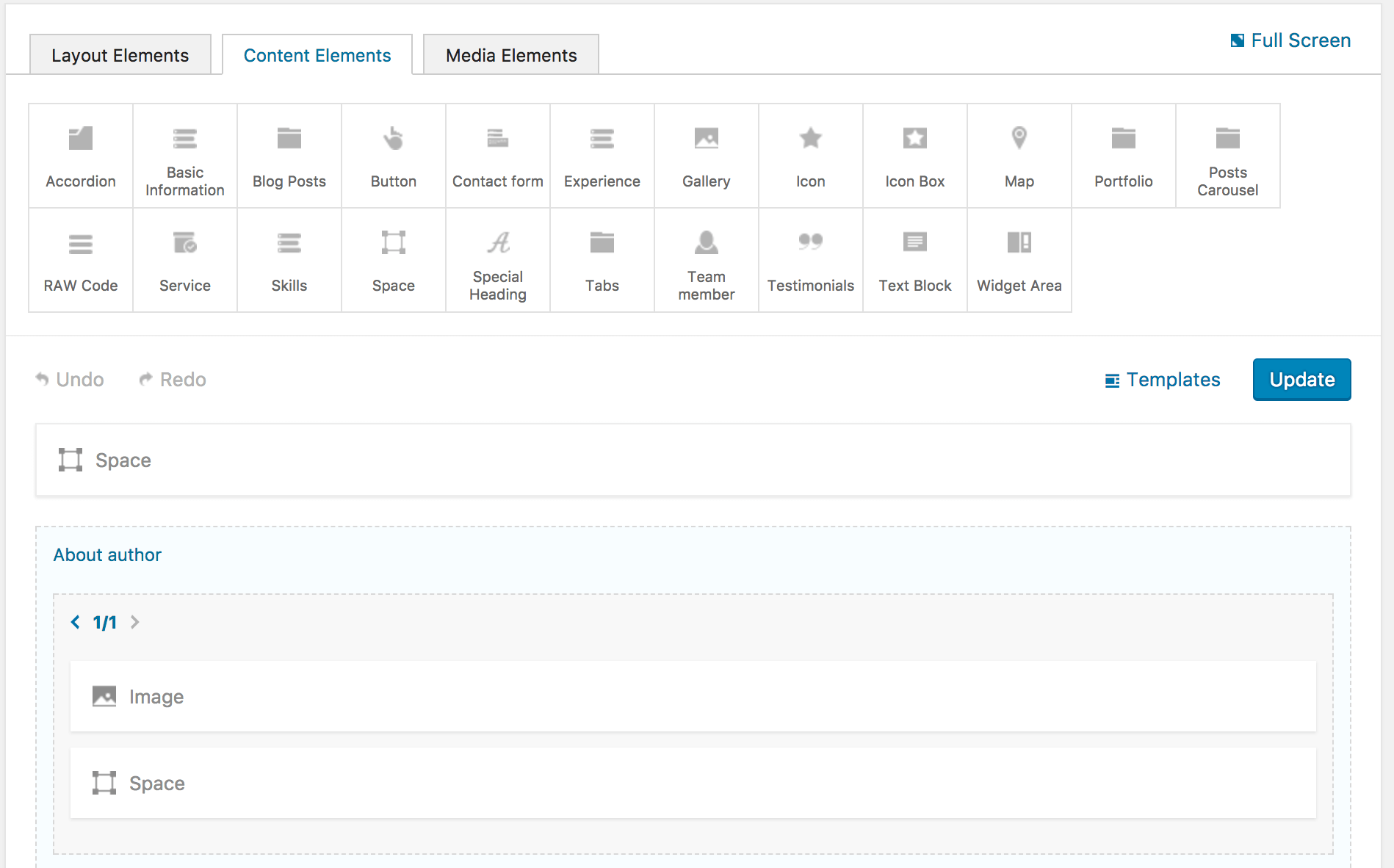 Full Width Page Template for theme visual builder.