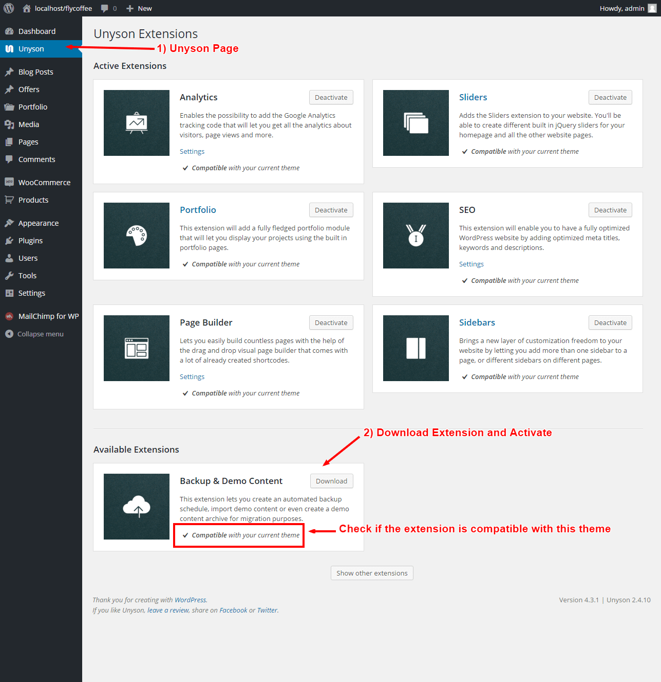 2. Download Unyson framework's extensions