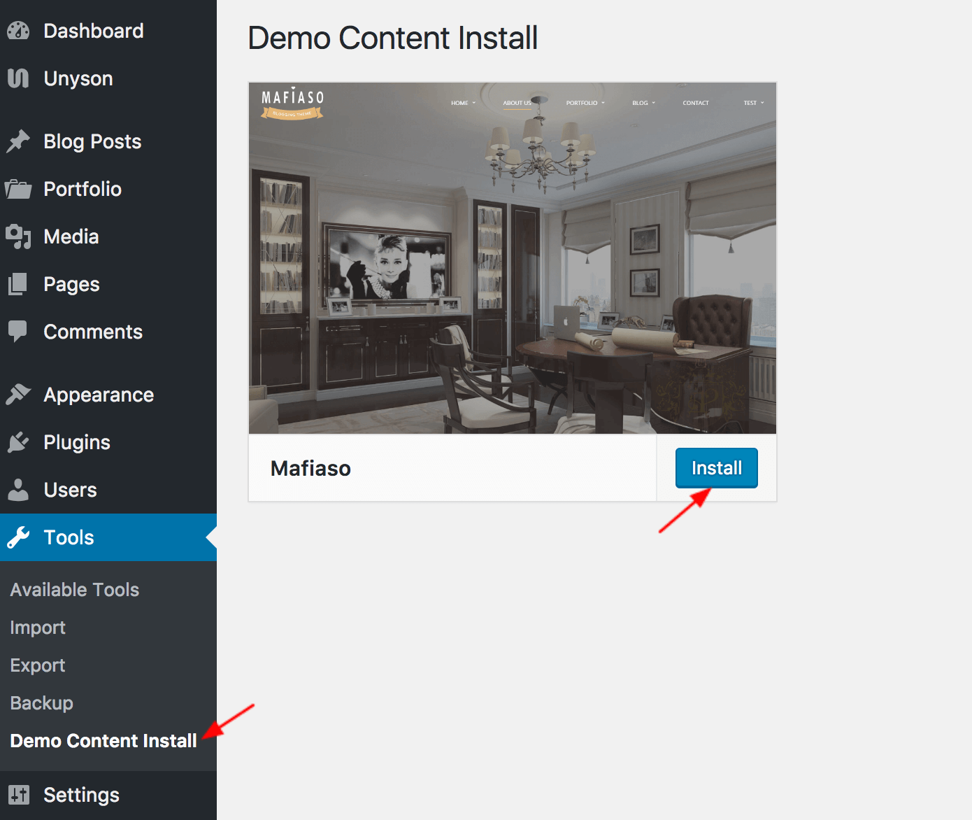 It is possible to import Mafiaso demo content to your WordPress website based on Mafiaso WP Theme.